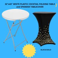 (1) Stretch Spandex Table Cover (Available in Black/Gold or other colors upon request)