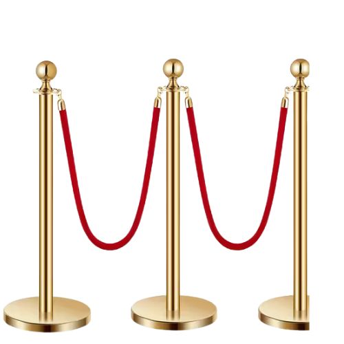 Create an elegant entrance or control crowd flow with our premium gold stanchion set. This set includes 3 polished gold poles and 2 luxurious red velvet ropes (5 ft. each), perfect for adding a touch of class to any event.