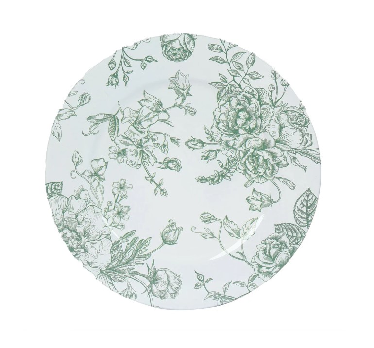 The White Sage Green Floral Acrylic Charger Plates in French Toile Pattern transform any table setting into a work of art. With a delicate white base accentuated by intricate Sage Green floral patterns, these 13-inch round charger plates exude elegance and sophistication. Their timeless design is perfect for weddings, galas, or small dinner parties, blending seamlessly with a variety of themes and color palettes.